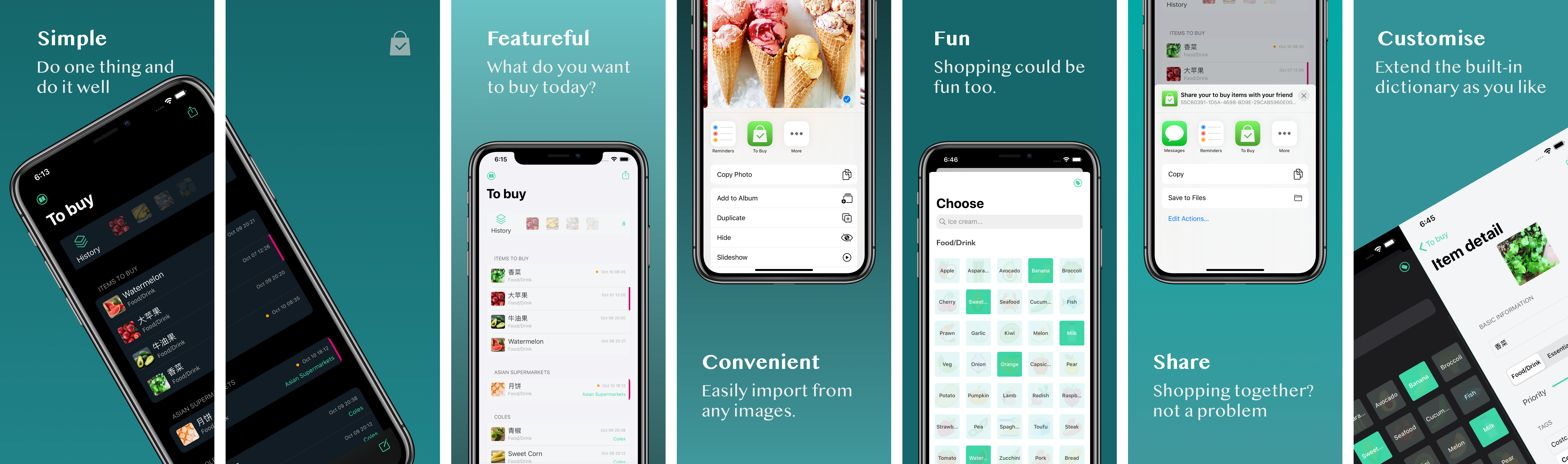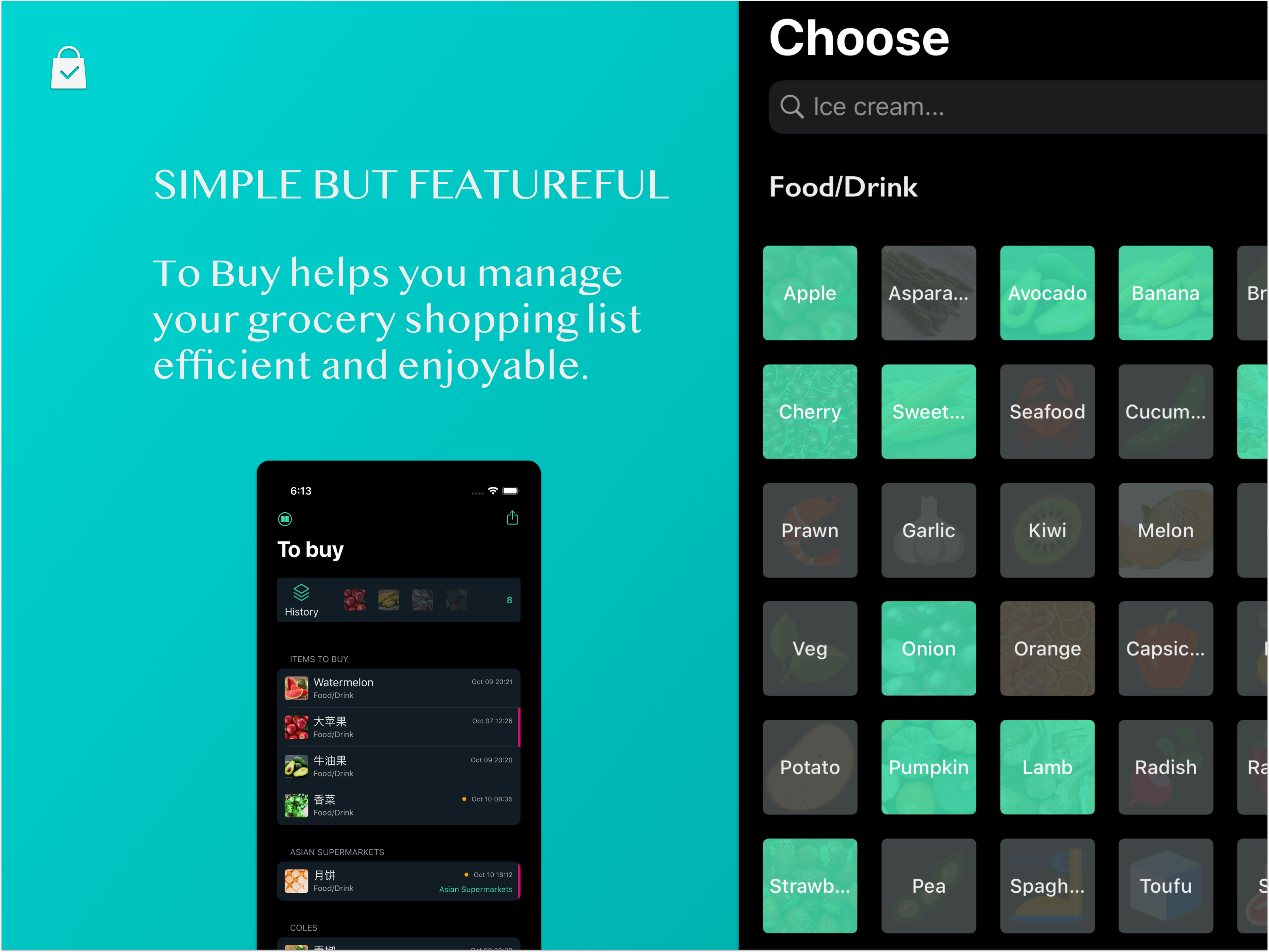 After a few versions (current V2.5.0) of iteration, now To Buy is essentially maintaining a grocery shopping list. It allows users to :