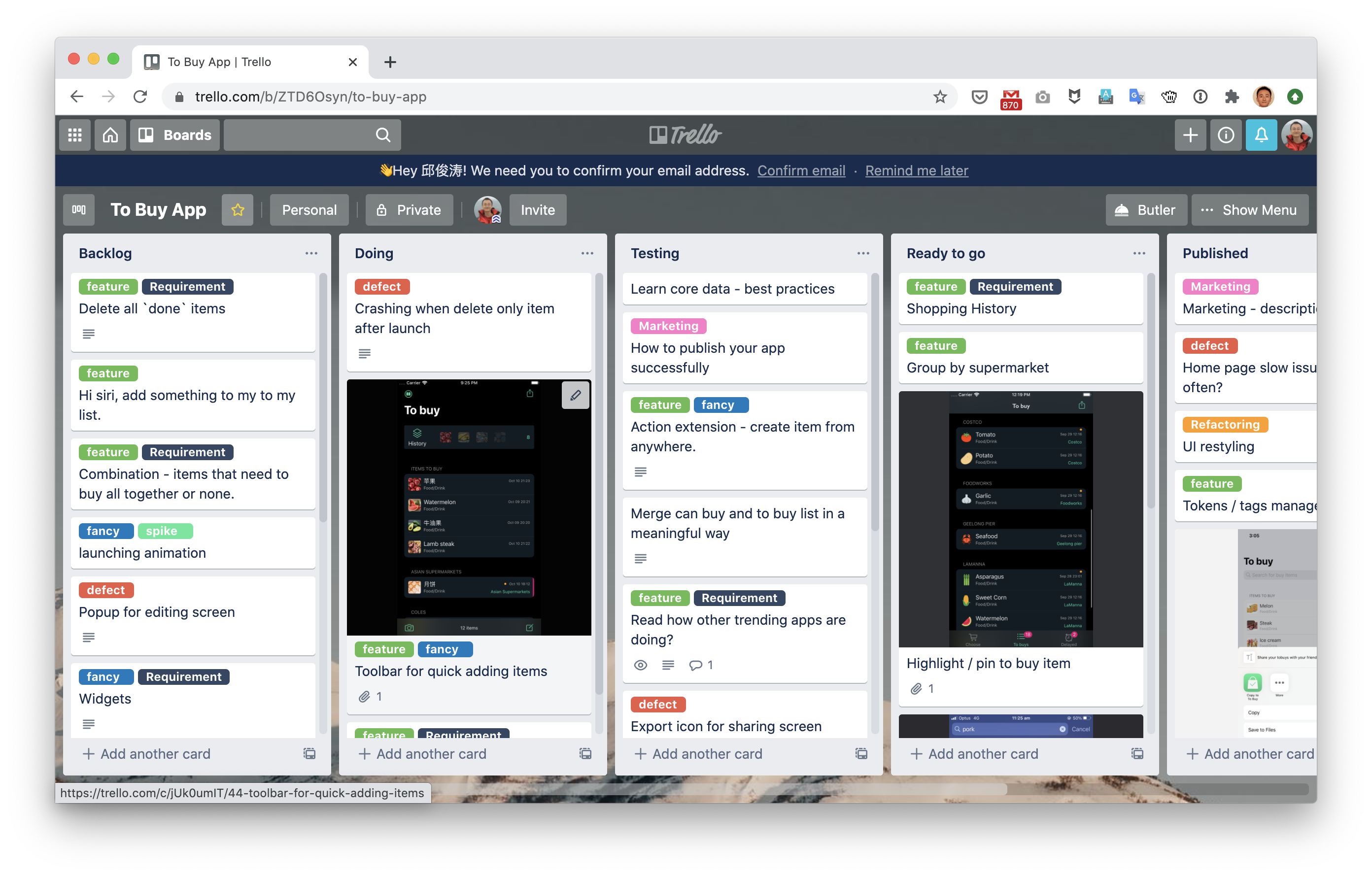In addition, I also noticed that at the beginning, I tend to breach a couple of agile practises that I have observed people keep ignoring on client site. Such as not updating the story on time, not controlling WIP numbers, or inserting temporary tasks into the Doing column directly without prioritising them properly, no clear acceptance criteria and so on. But after a few iterations, I changed the process and tried to make it more formal. And it does help me to focus on high priority, high-value features (instead of those are fancier)