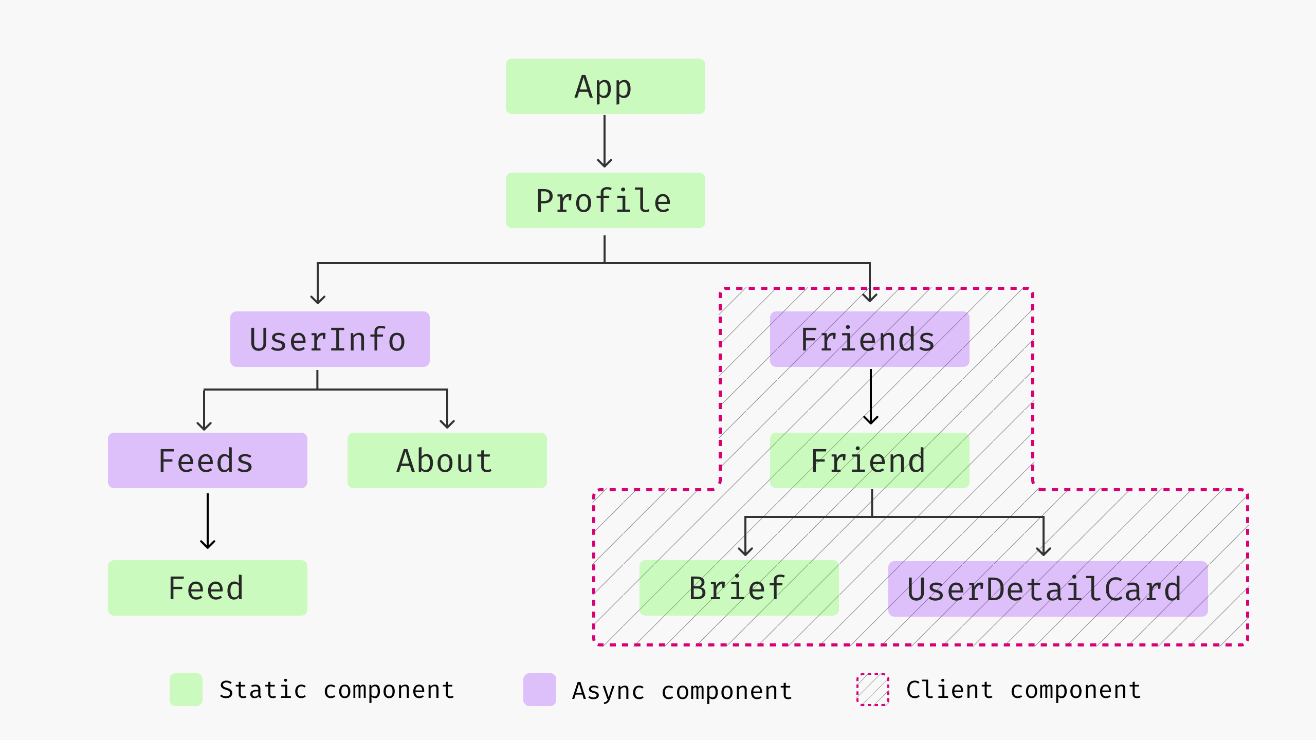 By applying the client component at the leaf node (Friend), you enhance the user experience with faster initial load times and progressively enhance the page with interactive elements as needed. This approach aligns well with modern web development best practices, particularly in frameworks like Next.js, where balancing server-side and client-side rendering is key to achieving optimal performance and user experience.